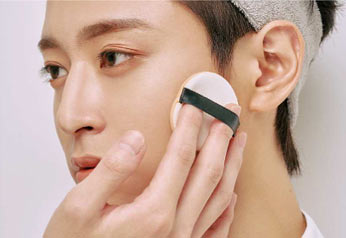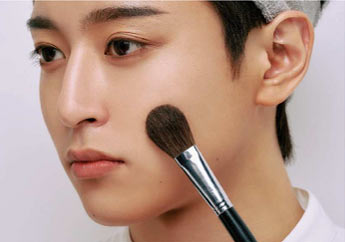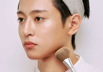 理由は鋭角的なラインで光をコントロールすることで、洗練された印象に仕上がるから。女性のようなふわっとした丸みを描くのではなく、直線的に、シャープに肌を重ねてつくるのがメンズメイクの基本だ。