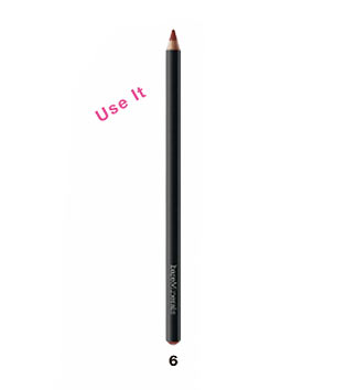 今回は目元を引き立てるためのリップメイクを意識。ヌーディな肌なじみのいい色を選びたい。6のペンシルライナーで、まず上唇の山をはっきりと描いてから、口角へつなげ、下唇も縁取る。同じペンシルで内側を塗る。多少塗りムラがあるくらいで◎。