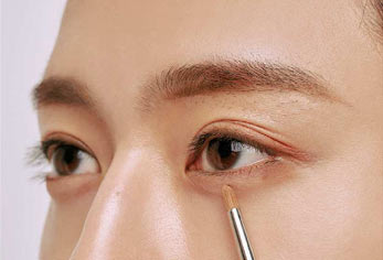 細かいストロークで繊細にメイク。
