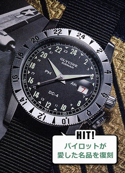 ベトナム戦争中にアメリカ空軍パイロットがこぞって愛用した「エアマン」。本モデルは、その伝説的なパイロットウオッチの構想を生むきっかけとなった航空機DC-4へ敬意を表して製造された。