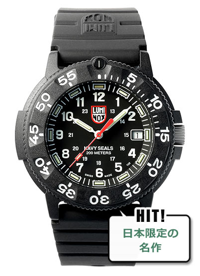 ネイビーシールズが制式採用したベストセラーモデルの日本限定モデル。秒針を赤くして昼間の視認性をアップしたほか、自発光システムと蛍光塗料インデックスを同時搭載し夜間の視認性も高めた。