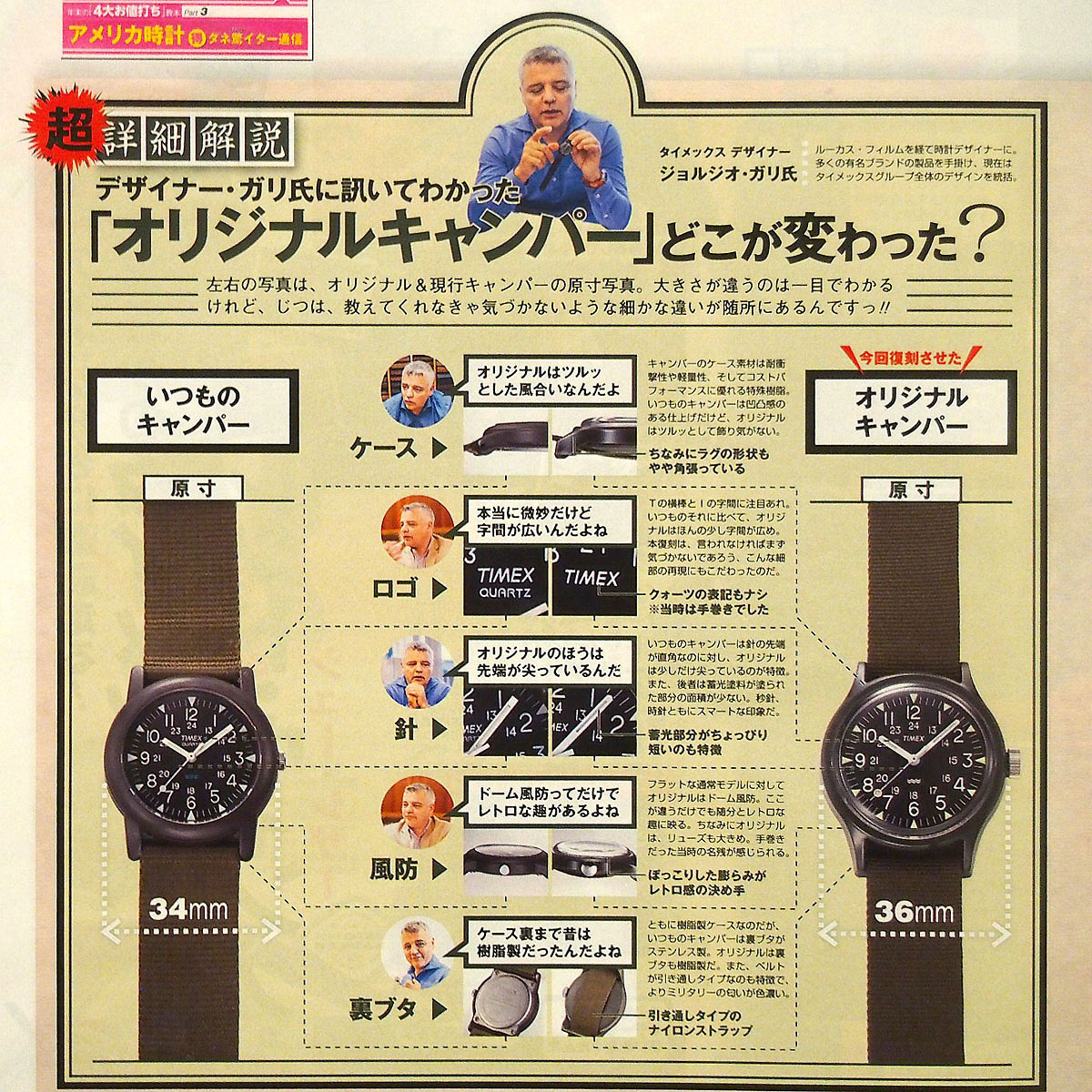 ベトナム戦争時に生まれた軍用時計「キャンバー」を元に開発された復刻版(2015年に発売された日本専用モデル)。