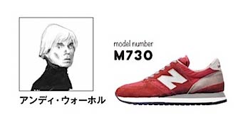 ポップ・アートの旗手を支えたのは、スウェードアッパーを採用したランニングモデル。特にバーガンディーを好んで履いていました。1982年公開の映画『トッツィー』で、本人役で「730」と共に登場しています。