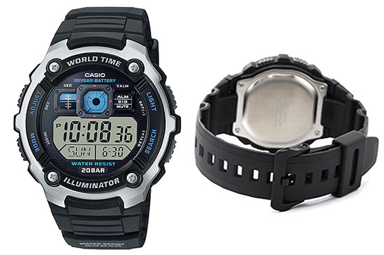 ワールドタイッムや時刻アラーム5本、ストップウォッチなど機能も満載。5千円前後でこの機能と20気圧防水はお買い得。