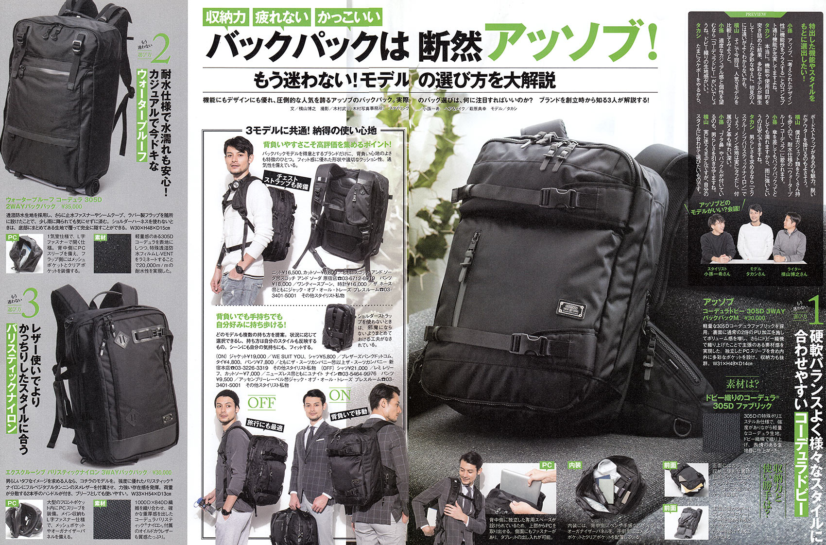 アッソブのリュック×おしゃれな着こなし