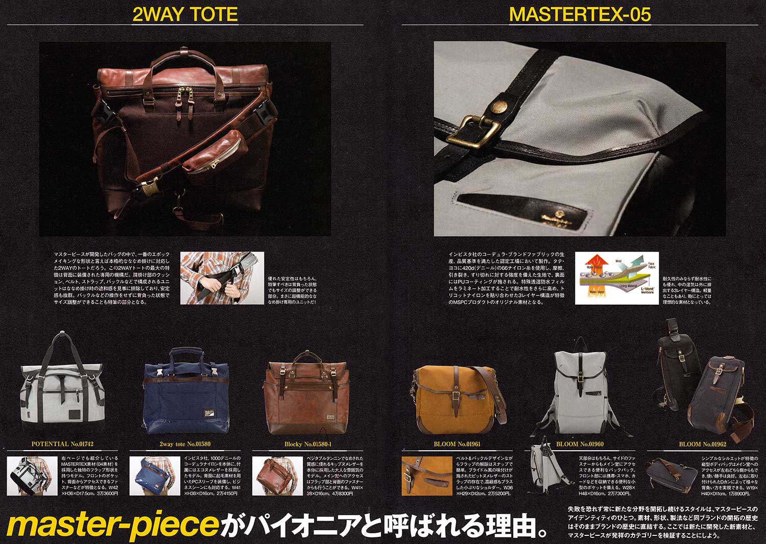 マスターピースは日本で始めて「ファッション性の高いバッグ」を提案し始めた、今やおしゃれなリュックを語る上で外せない王道ブランド。