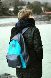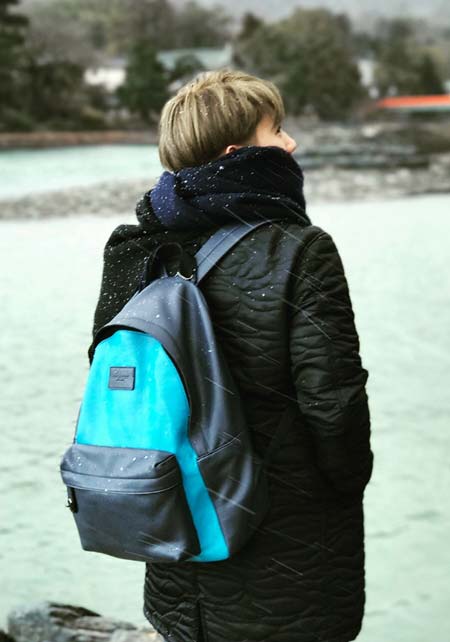 高強度かつ高耐水性なビニール系素材「ターポリン」を使用したリュック。