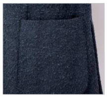 ポケット周囲の上下のうち、片方のみを縁取りした仕立て。四角くフラットな外見が特徴。