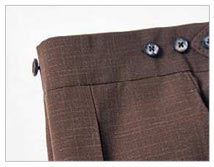 前立ての部分。ビジネス用パンツ大半を占めるジッパー式と、カジュアルに多いボタン留めがある。どちらも比翼仕立てで覆われる。
