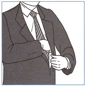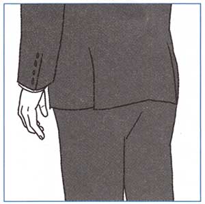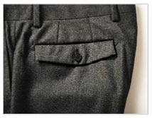 ヒップポケットに左右片方、あるいは両方に蓋が付いている。上着を脱ぐ春夏によく見られる。