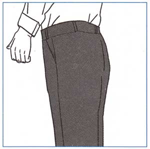 ウエストラインから股下までの長さを指す。ここが長いほどクラシックスタイルになるが、過去には比較的ローライズが主流だった。