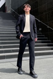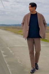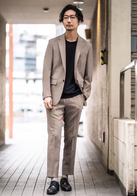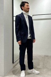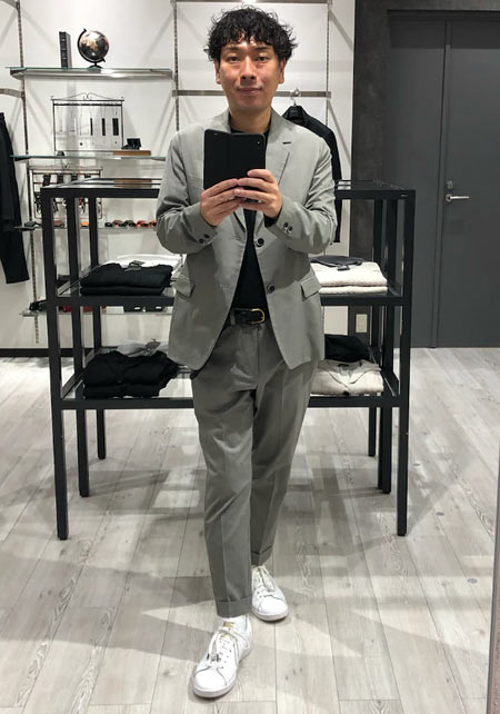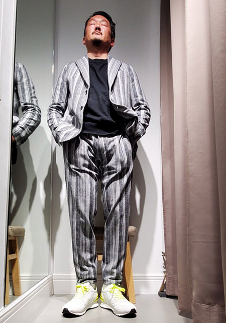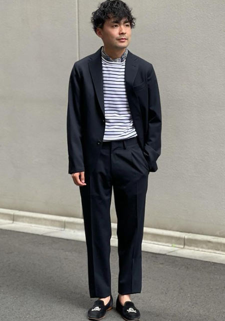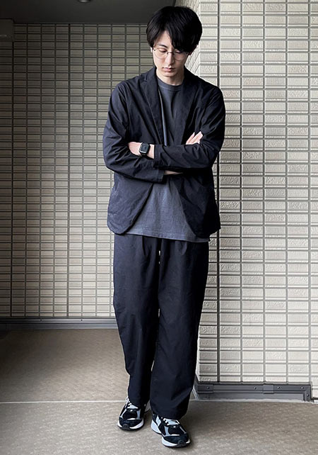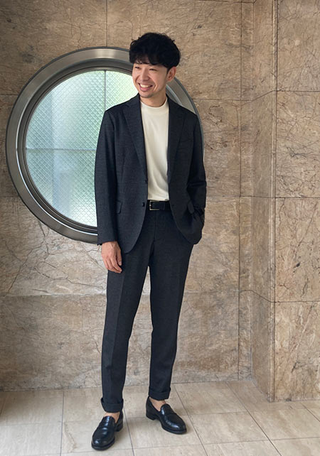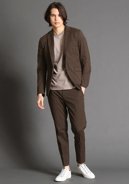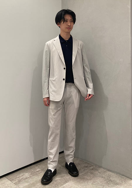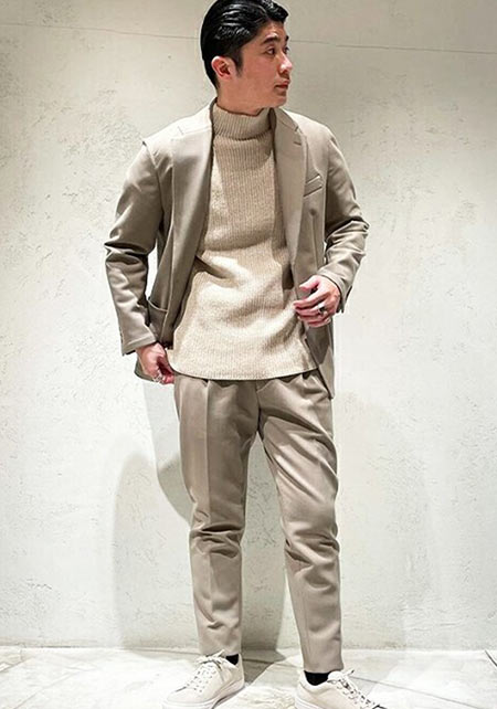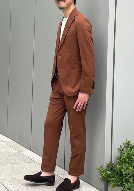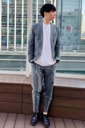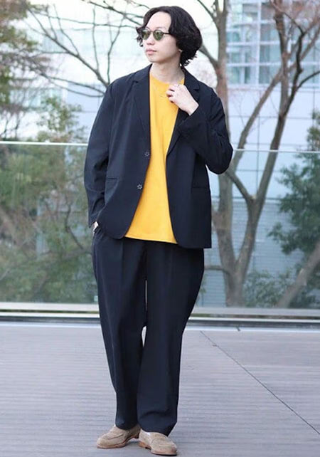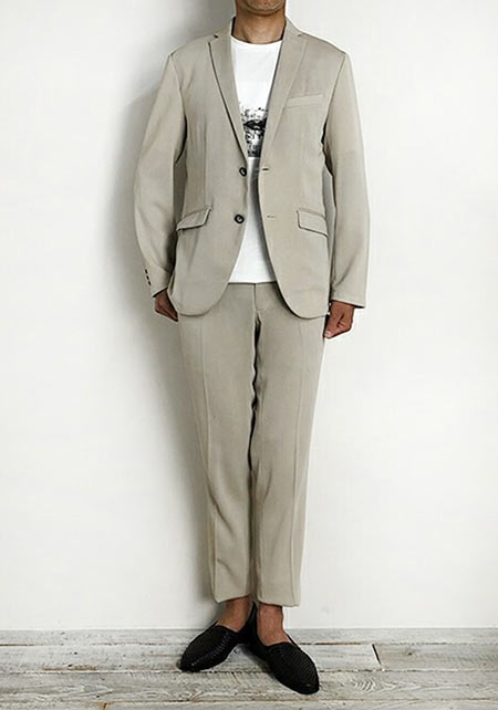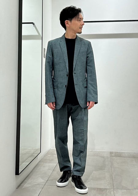 セットアップは、初めから上下の合わせを考える必要がありません。とにかく着てしまえばスタイルがほぼ完成します。