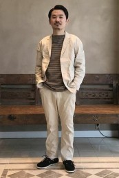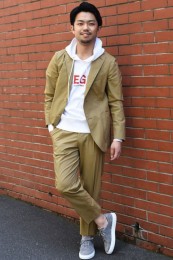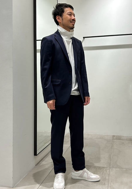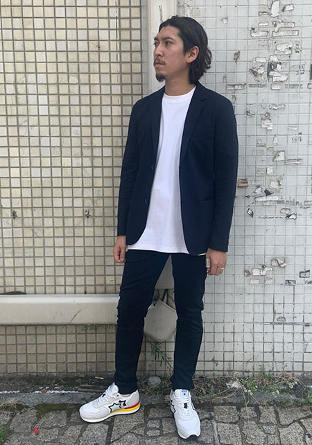 裏地まで用いないアンコン仕立てでリラックスした佇まいであり、白パーカーやスニーカーなどのスポーティなアイテムとのコーディネートも容易にキマります。