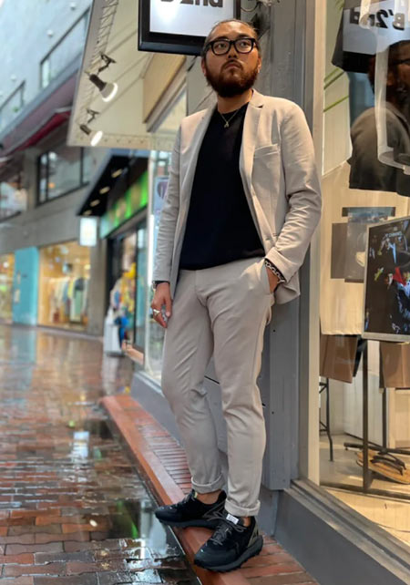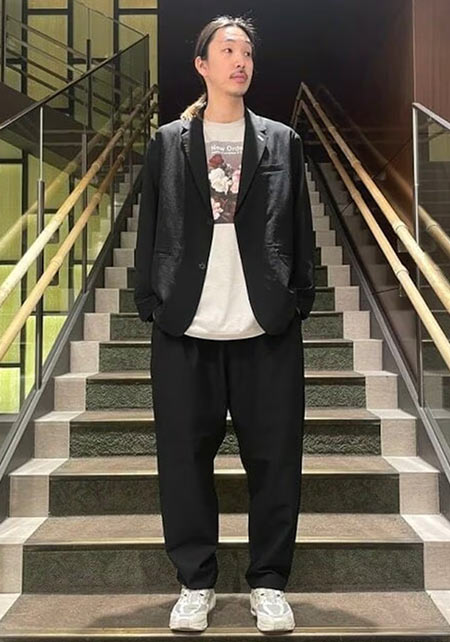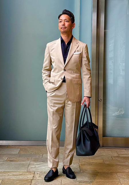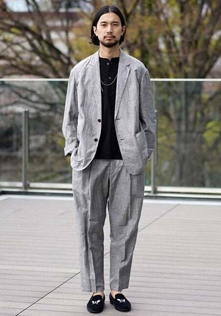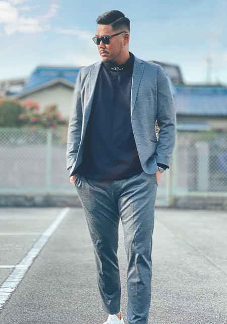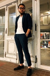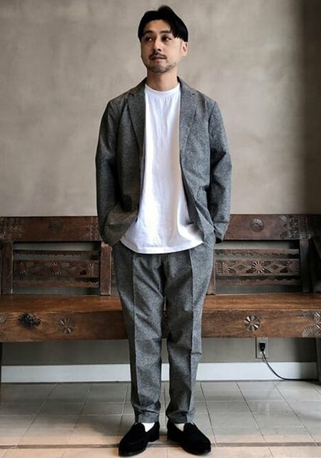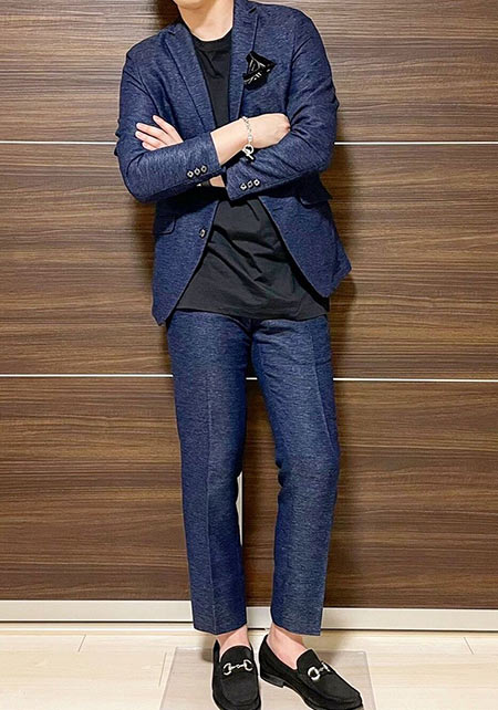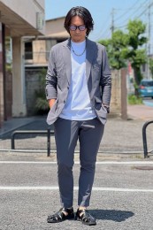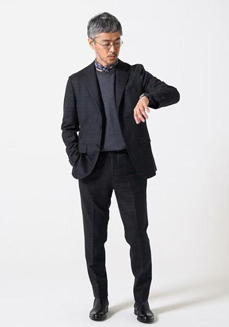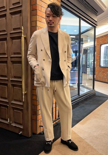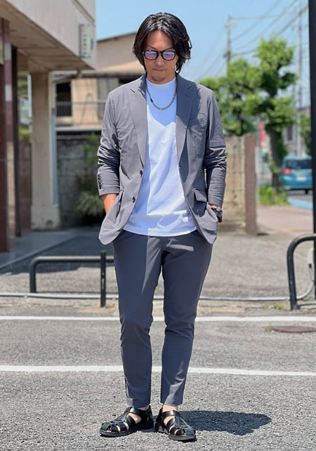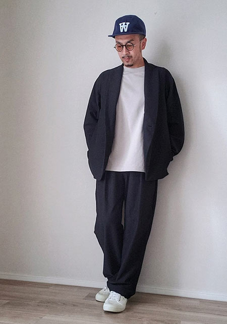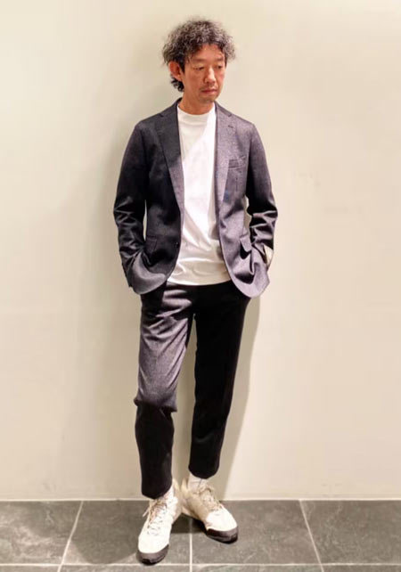 ジュンハシモトのセットアップ×おしゃれな大人の着こなし ▼タップで拡大 or スワイプできます