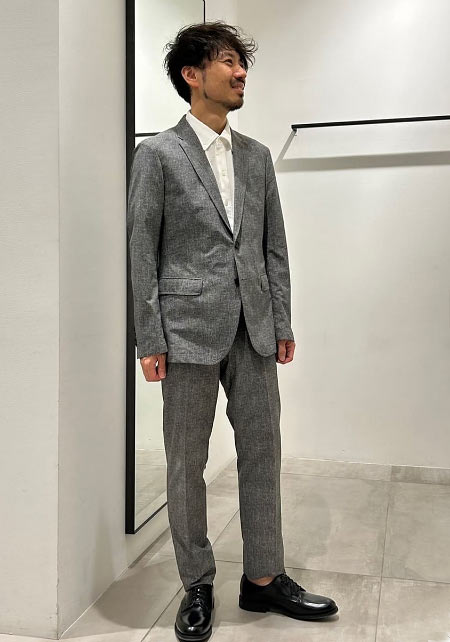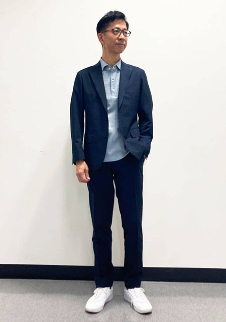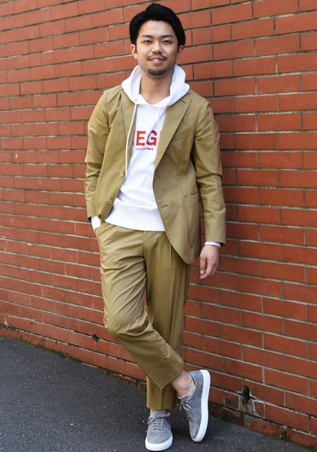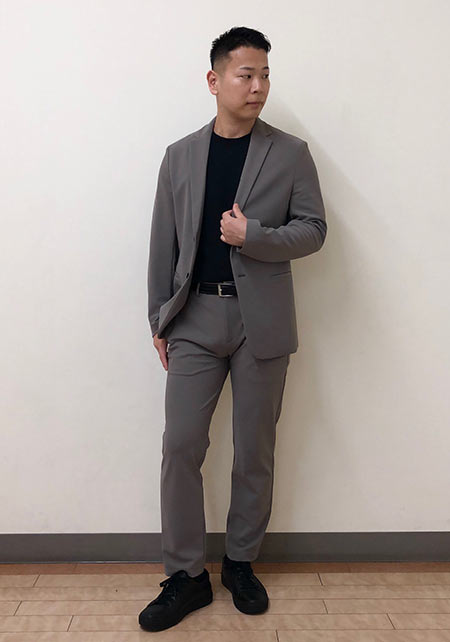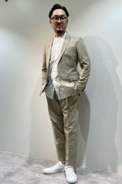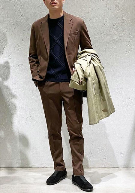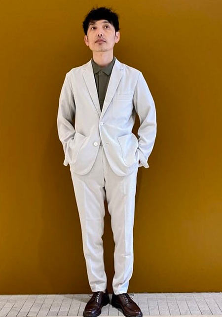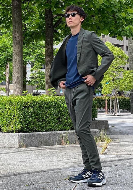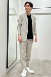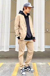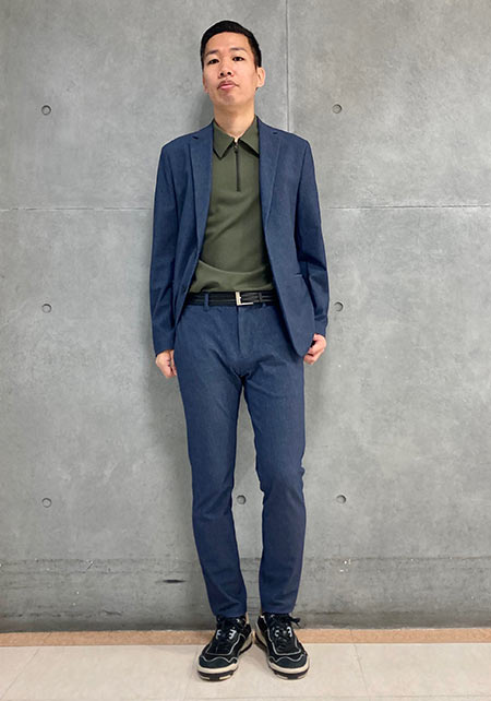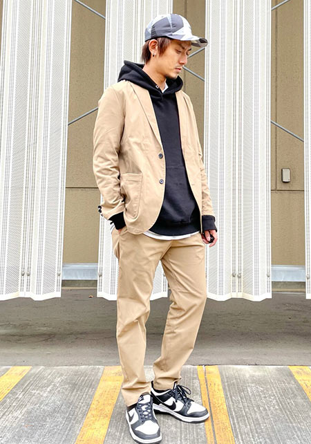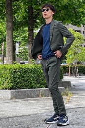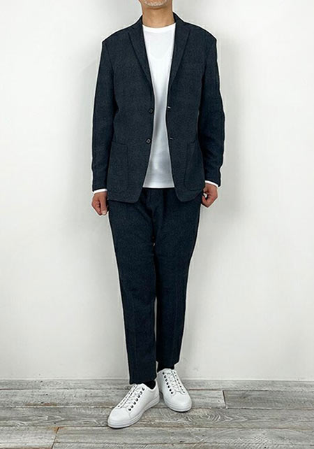 「上下お揃い、ジャケットだけ、パンツだけ」と3パターン使えるのもセットアップの魅力です。