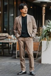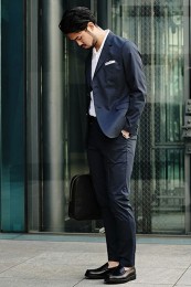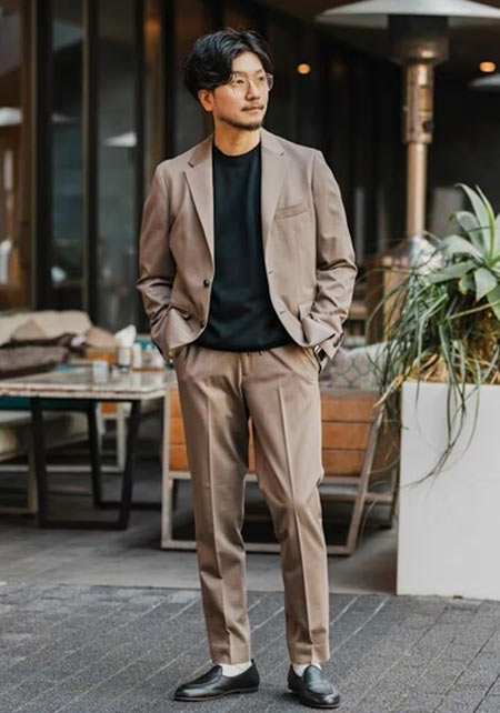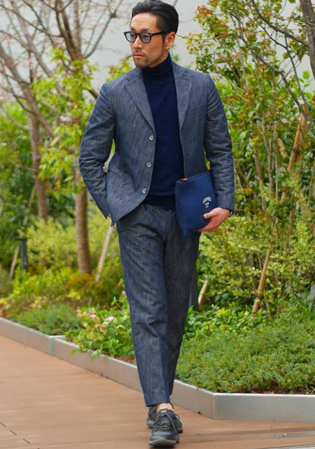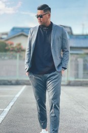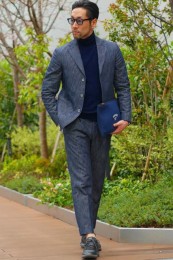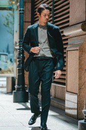 上下共地のセットアップは、そもそもスーツの派生形。だから、着るだけでキチンとした人に見えます。清潔感があり女性のエスコートなんかにも長けた余裕がある大人を醸せるゆえ、モテにも繋がります。