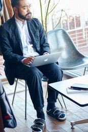 休日や出張の移動時、どんなにリラックスしようとも、大人としてどこかキッチリとした気分が欲しい。そんな時、このジャージースリーピースがあれば、合わせすら考えず楽して洒落られます。