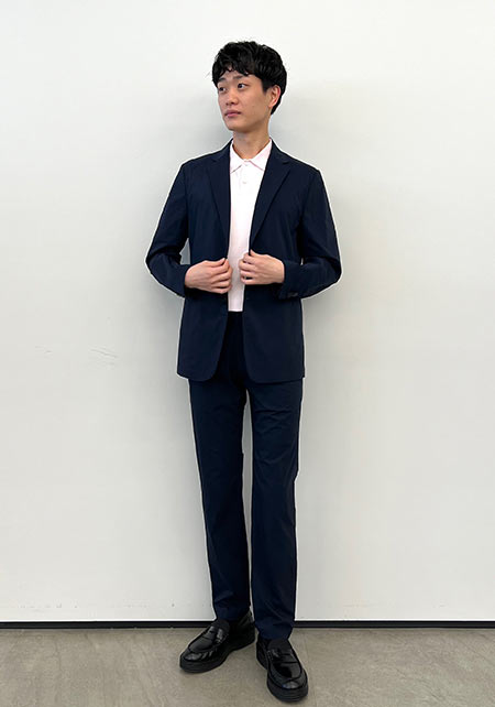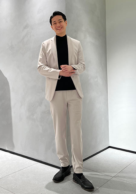 ストレッチ性だけでも十分なのですが、その実、パンツのひざ裏に切り替えを施した立体パターンによって、さらなる着心地を追求した定番セットアップスーツ。