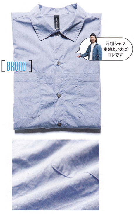 素材は上品な印象の強いコットンブロード。ドレスシャツの正統感とリラックスした印象を同時に感じられる絶妙なサジ加減が魅力。