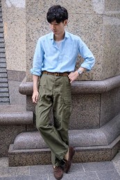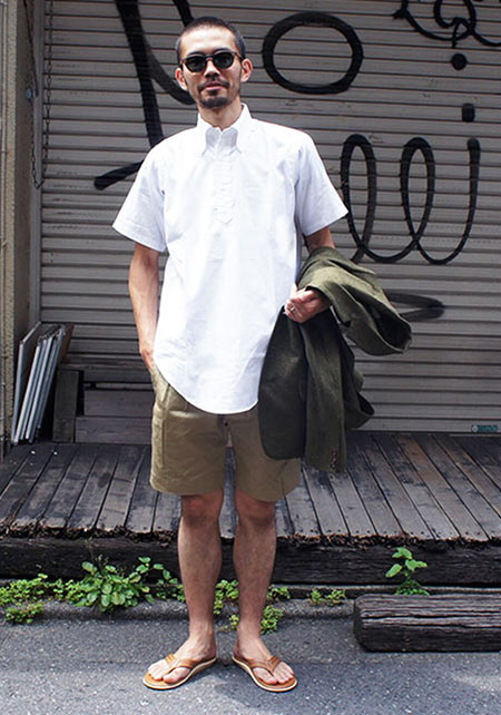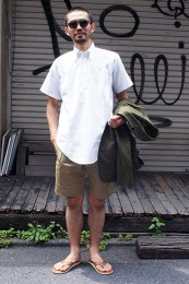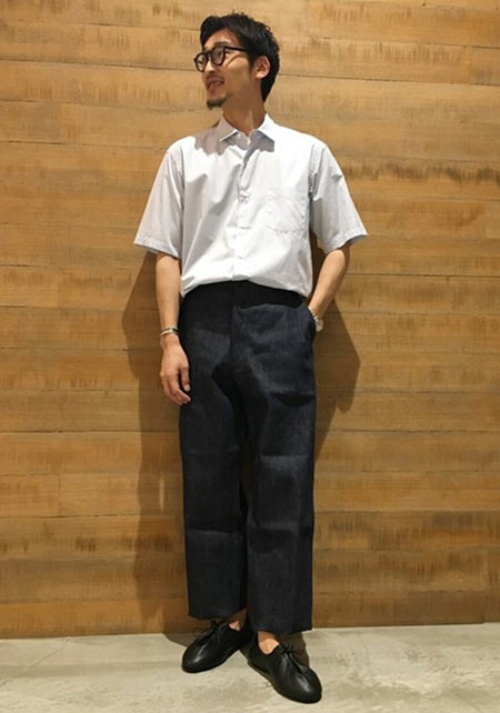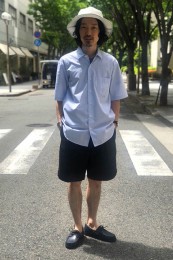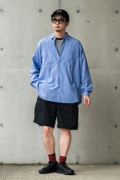 英国シャツにインスパイアされた同ブランドによるシャンブレーヤツ。ポケットや前立てを排除し、ボタンに鳥足掛けを採用するなど、半袖ながらドレッシーな作りは専業ブランドならではのもの。