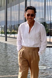 上品なリラックス感を演出する大人の長袖開襟シャツ