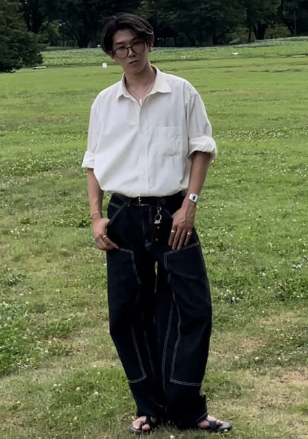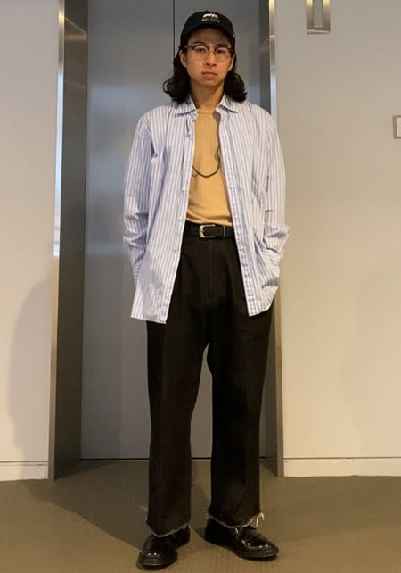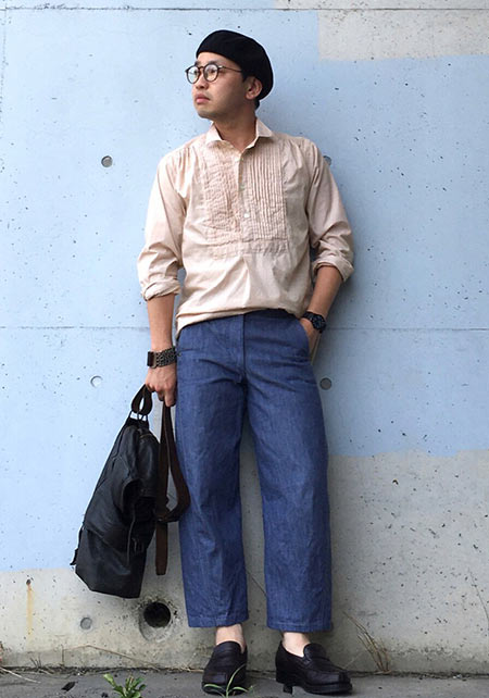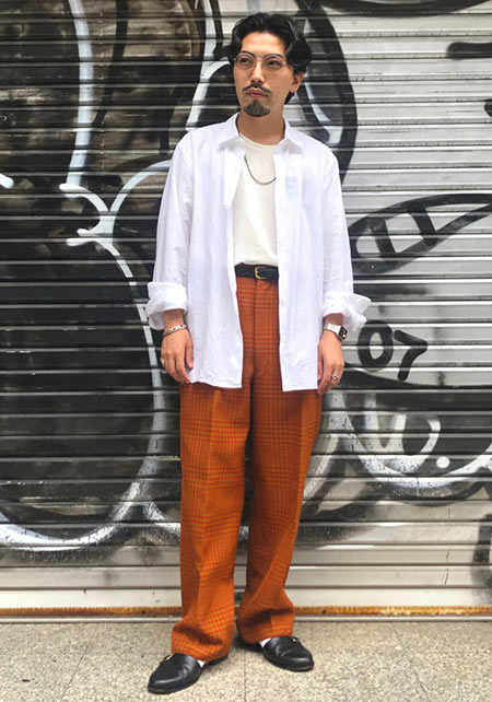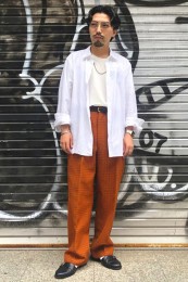 〈コーデ〉装飾的要素のあるデコシャツは一枚羽織るだけでスタイルが成立する存在感がキモ。必然的にコーデも楽チンゆえ、取り入れない手はありません。