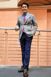 ナポリ伝統のテーラリング技術を駆使した上質でエレガントな一枚は、フィナモレらしく腕周りとウエスト周りはスリム。二の腕や胸板が強調されることによって、オヤジの男らしさをより引き立ててくれる。