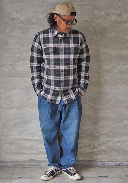 ブランドの大定番たるコットンフランネル素材のワークシャツ。アメリカンなムード溢れる一枚ながら、絶妙に抑えたトーンや美しいシルエットにモダンな雰囲気が滲みます。