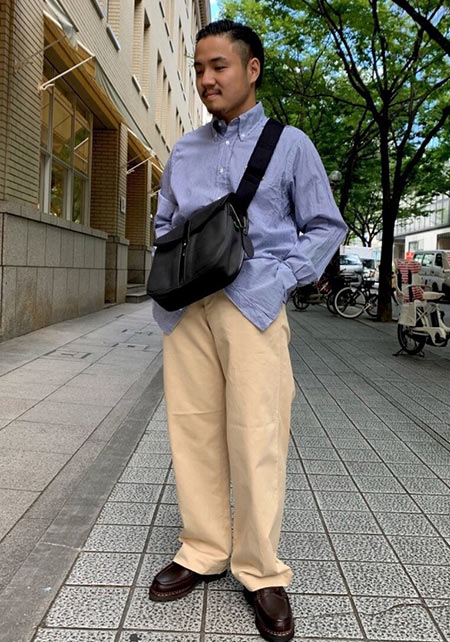 オックスフォード地のシャツは透け感もなく、フィット感も抜群。見た目は非常にシンプルですが、やや厚手でタフさをにじませており、良いアメリカンシャツの条件を含み、着るほどに愛着が沸く。