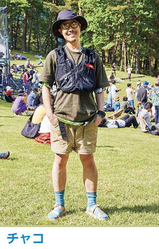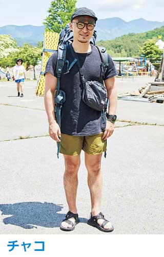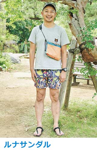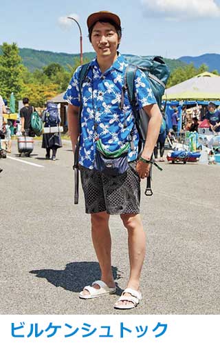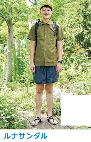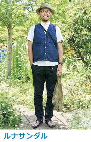 サンダルは足全体を保護しつつ滑りにくいアウトソールで、山歩き・川歩きをサポートする質実剛健なもの。ここ数年はタウンユースでも一般的に。