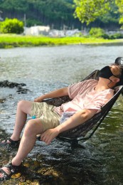 バックルを外せばフラットになり、バッグ・リュックの中に入れてもかさばらずに持ち運びしやすいのが最大の特徴。キャンプ地に着いた後のリラックスタイム用や水遊びのお供にもオススメです。