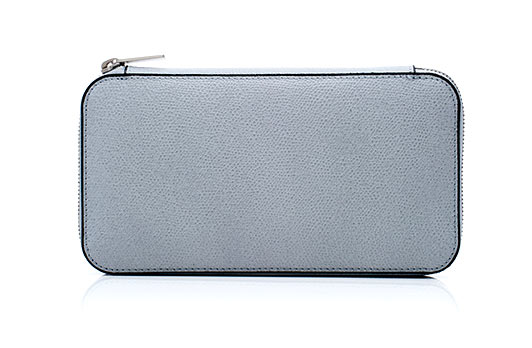 品の良いアッシュグレーのソフトカーフスキンを使用した収納力抜群の財布。