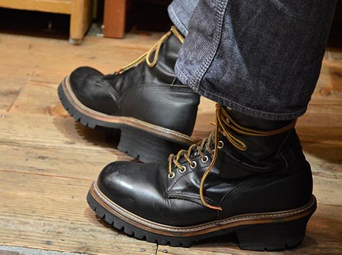 巨木を切り倒す職業「ロガー」の足元を支えるため、ワークブーツの中でも一際頑丈な作り。このモデルは創業当初から作られており、1940年代には現時あとほぼ同じモデルが完成しています。