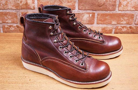20世紀初頭のレッドウイング社のブーツをベースに製作。最高級革のフェザーストーンレザーを採用しているのはこのモデルだけ。