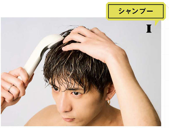 まずはシャンプー前に予洗いを。シャワーヘッドを頭皮に押し当て、地肌までたっぷりとお湯をかけながら頭皮と髪を洗って。こうすることで髪の汚れの大半を落とすことができ、シャンプーによる髪の摩擦も軽減することが可能に。