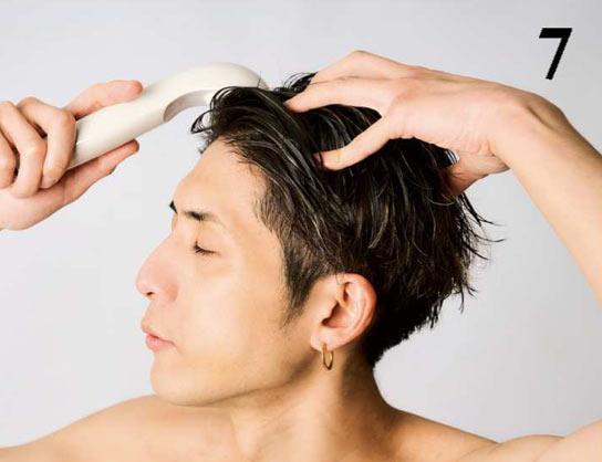 すすぎの際は、頭皮にコンディショナーがつかないように意識しつつ、たっぷりと洗い流す。ぬめりがなくなり、適度に指通りがいい状態が目安。