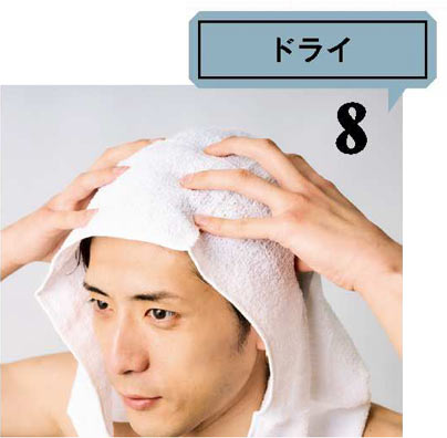 洗髪後のタオルドライは、ゴシゴシとこすってしまうとその摩擦で髪が傷むので、タオルを押し当てるイメージで優しく動かして水分をオフ。この後、ドライヤー前にヘアブラシで軽く髪をとかし、絡まりをほぐしておくとよりGOOD。