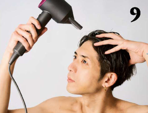 ドライヤーは、ヘッドを10~15cm離し、左右に振りながら上から下に風を当てる。こうすると、濡れて開いたキューティクルが閉じやすくなり、ツヤやまとまりのある髪へ仕上がる!