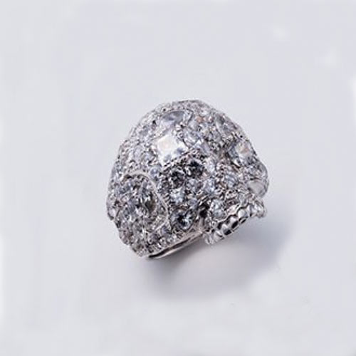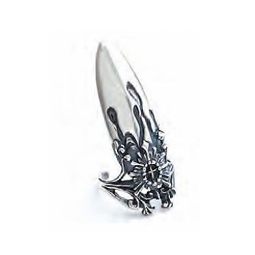 クラウンに爪のモチーフを組み合わせたインパクト抜群の作品。中央にはクロスとスカルのデザインを配置した。2万3000円(税抜)