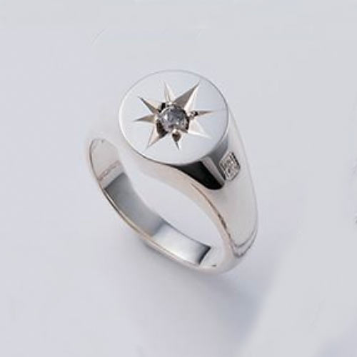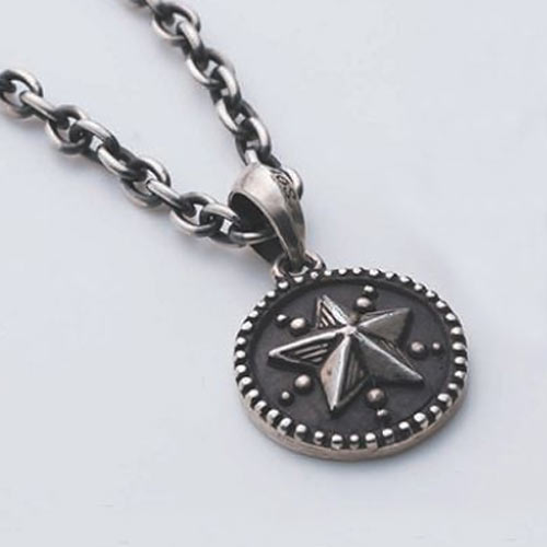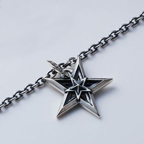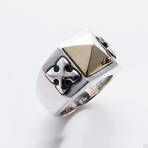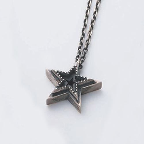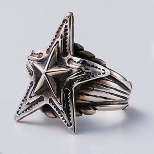 エッジの効いた骨太なスターを逆さに配置。その上から正位置のスターが立体的に彫刻されています。中心部分の素材はシルバーとブラスの2種類から選択することが可能。1万2000円(税抜)