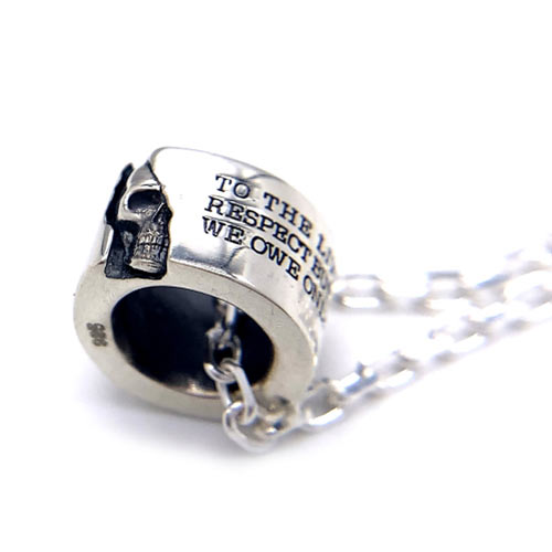 人間の頭蓋骨と死を見つめる動物と呼ばれるバビルサを組み合わせ、ラテン語で死生観を表すメメント・モリを表現。4万円(税抜)