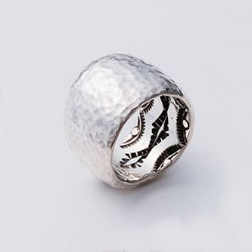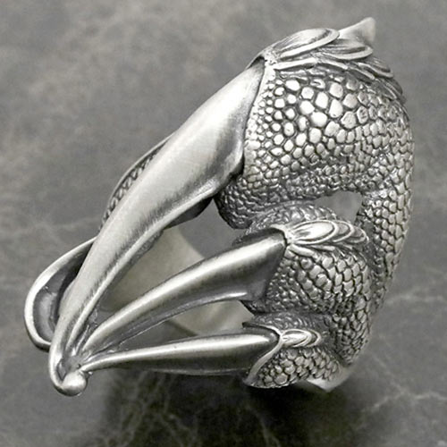 着用時に龍の爪が指を掴んでいるかのような構図が面白いリング。躍動感のある爪やの彫刻はまさに芸術的な仕上がり。国内だけでなくアジアでも根強い人気を誇る作品です。4万円(税抜)