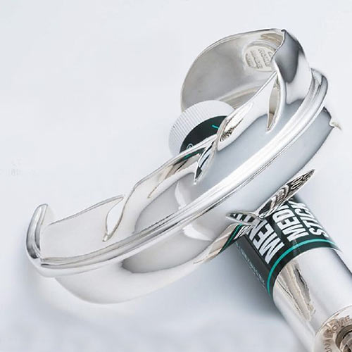 ブランドがモチーフに掲げる脈とシンプルさがうまく調和したブレスレット。腕もとから確かな存在感を放ち、ずっしりした重量が着用した際に満足感を与えてくれます。12万3000円(税抜)