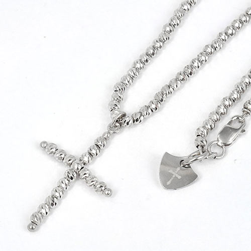 クロスをモチーフにすっきりとデザインされたネックレス。シルバーの美しい輝きが神秘的な空気感を強調しています。4万円(税抜)