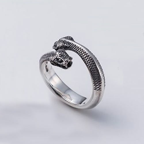 双頭のスネークをモチーフにしたリング。リアルな表情が見る者を魅了する。どの指でも着用できるフリーサイズ仕様。2万円(税抜)