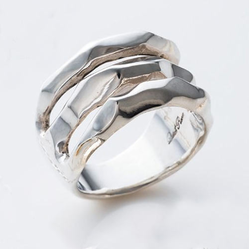 躍動感のあるフラッグをモチーフにデザイン。適度な太さを保ちながらフリーサイズなので着用する指を選ばない。1万2000円(税抜)