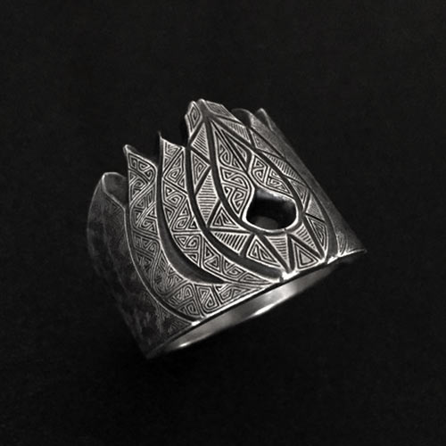 海のギャングをモチーフにデザインされたリング。緻密にデザインすることで攻撃的な雰囲気のある仕上がりに。1万6000円(税抜)