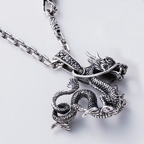 丁寧な彫刻と美しい仕上がりが魅力のドラゴン・ペンダントヘッド。フック部分にはホワイトCZをセットしてアクセントをプラス。1万2000円(税抜)、チェーンは60センチ1万5000円(税抜)