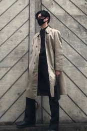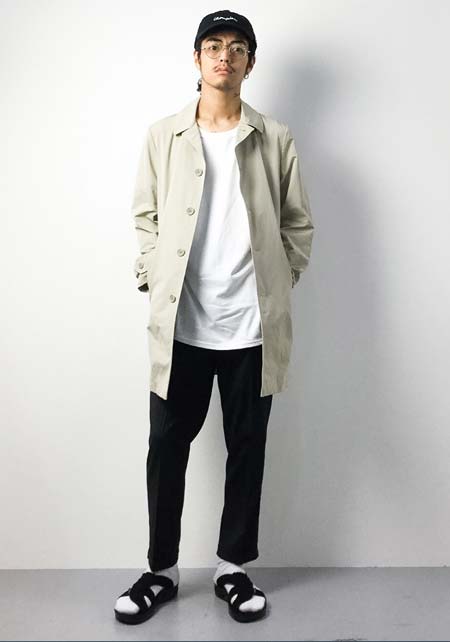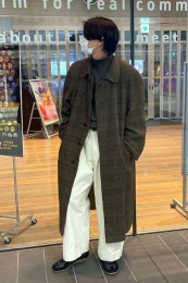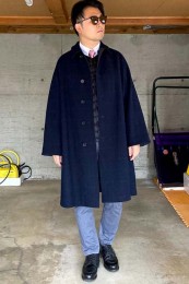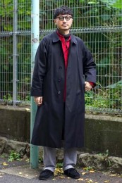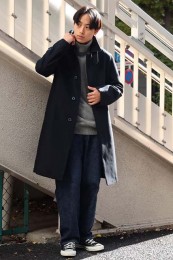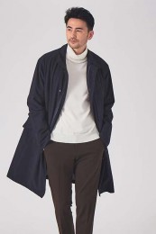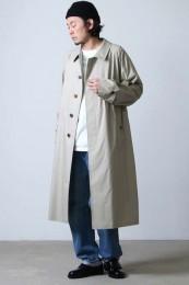 ポリエステル&ナイロン素材による独特な表情に、あえて太い身幅でラフな印象に仕上げた休日専用ステンカラーコート。羽織るだけで”こなれた感”を出せ一歩差をつけます。