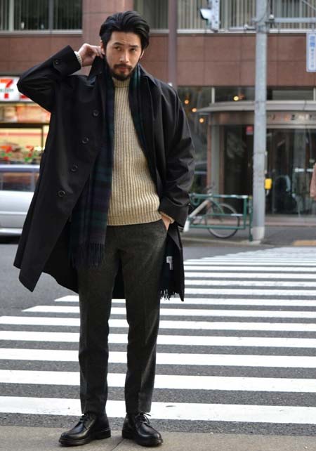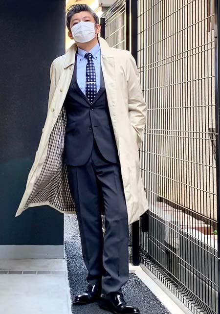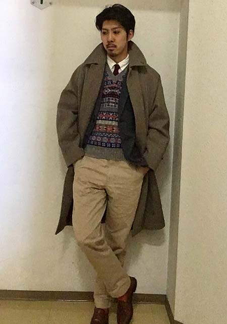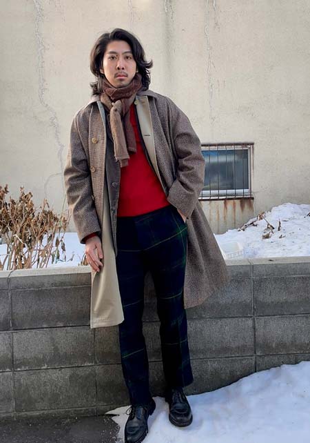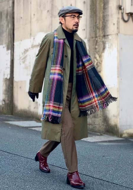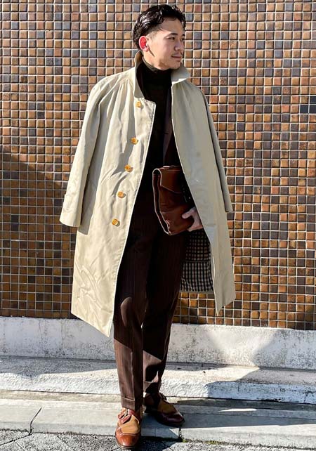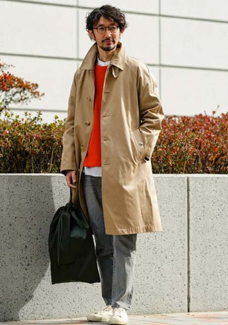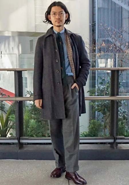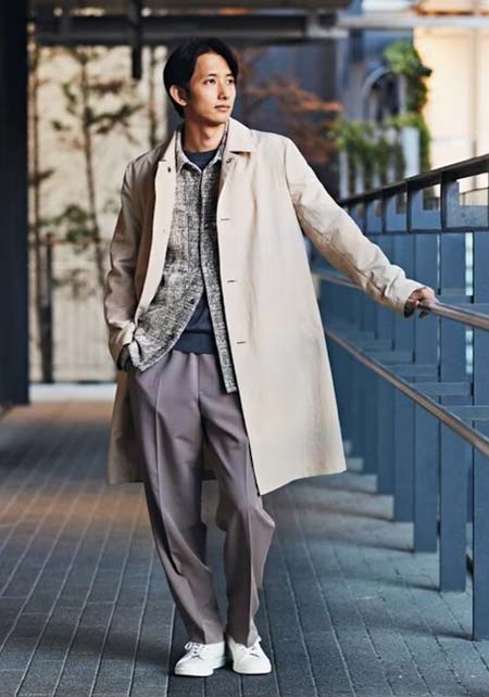 マッキントッシュ×ステンカラーコートのおしゃれな着こなし